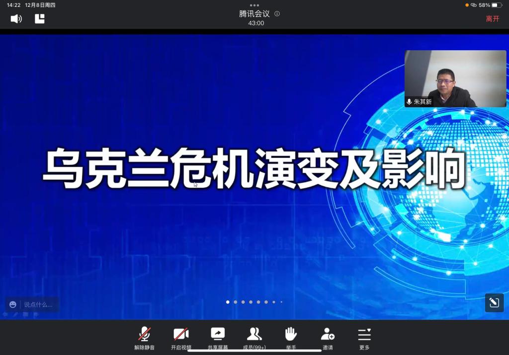 周刚与伯洁老师分别从理论与实践的角度为学生们讲解了《学习贯彻党的二十大精神》与《伟大时代的历史跨越》,通过一系列振奋人心的数字与事例介绍了近十年来发生在祖国的沧桑巨变,引导同学们努力学习、增长才干,为中华民族的伟大复兴贡献青春力量;朱其新老师给大家带来了今年举世瞩目的《俄乌战争危机演变及影响》专题讲解,通过洞悉双方此次开战的背后渊源与对世界格局的影响,帮助同学们打开国际视野,启示青年学子要关注国家安全,自觉做国家安全的守护者;曹自洋与蒋全胜老师选择了《书写”一国两制”实践新篇章》专题,深刻阐明了中国特色社会主义制度的优越性,对提升同学们的民族自信与自豪感颇具效果。