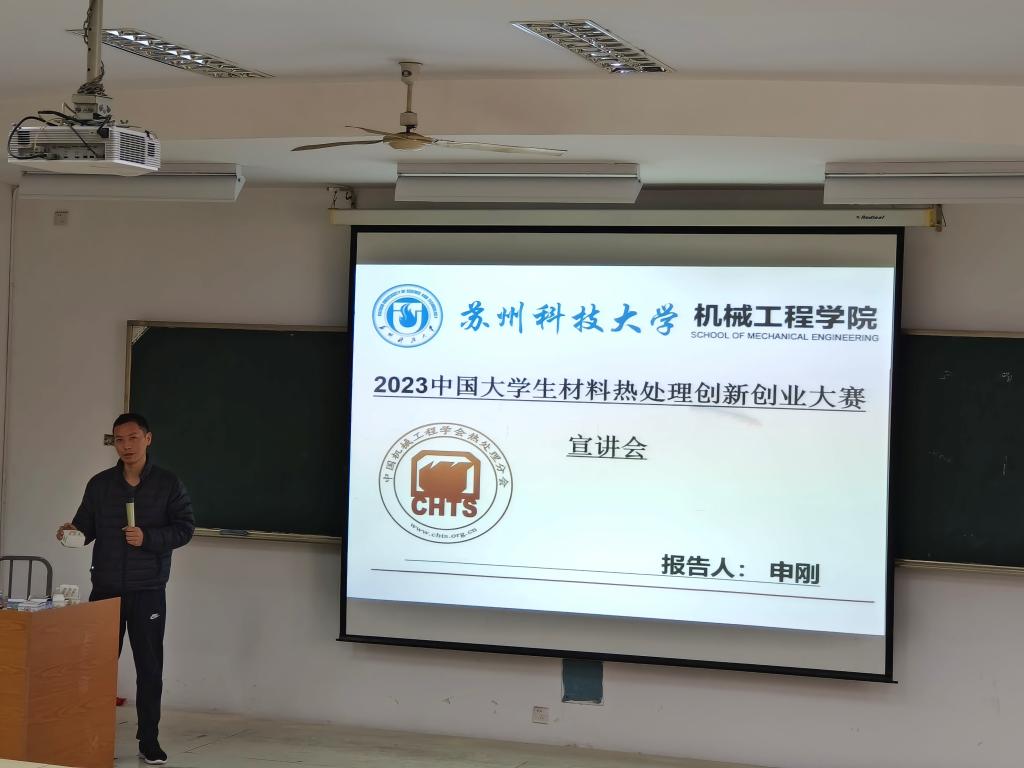 为加强同学们对于大学生材料热处理创新创业大赛的了解,3月29日,大赛宣讲会在天平校区第四教学楼J15教室顺利展开,此次宣讲会由申刚老师主持。