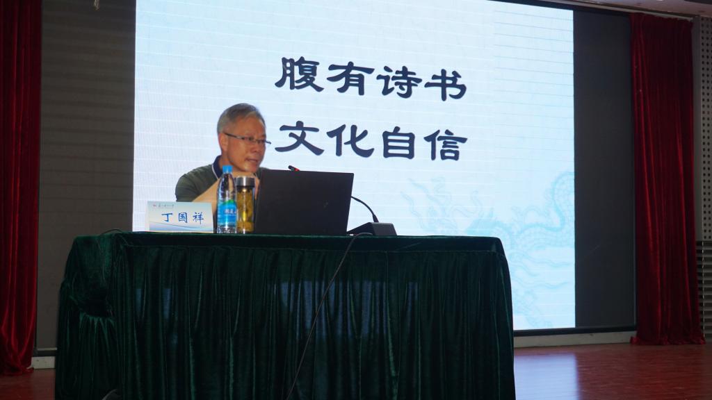 丁国祥教授以“腹无诗书会怎么样”为引子,抛出疑问,引导大家思考探索人文素养在教化育人方面的作用,通过一句句耳熟能详的诗词、一个个幽默风趣的故事,深入浅出,引人入胜,春风化雨,涤荡心灵,为大家上了一堂别具特色的文化素养提升课。他勉励大家要用清醒的头脑克服浮躁心态与拜金主义,在纷繁的世界中潜心阅读经典著作,成为一个“腹有诗书气自华”的人,不断提升自己的文化素养与人生品味。