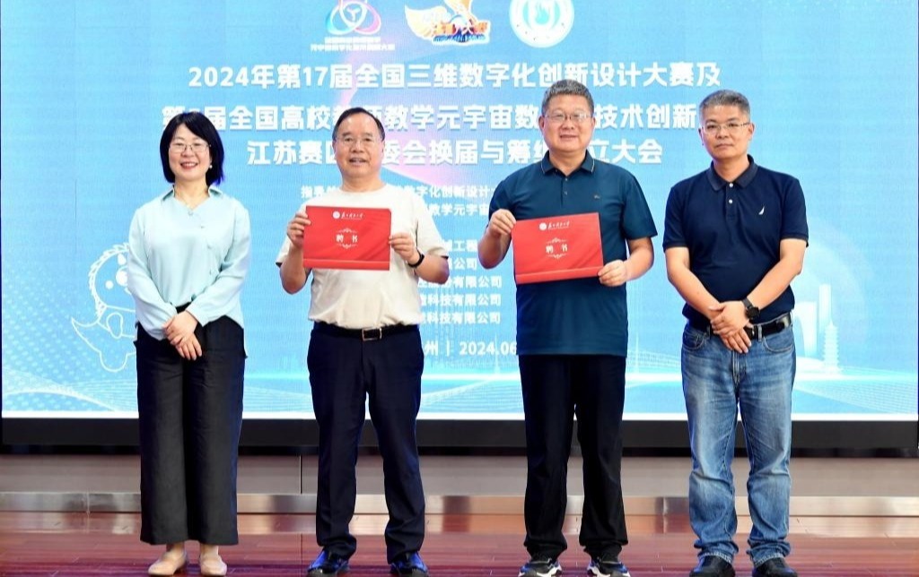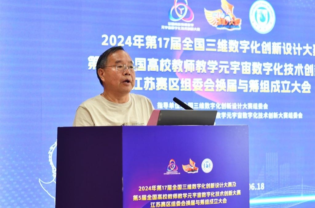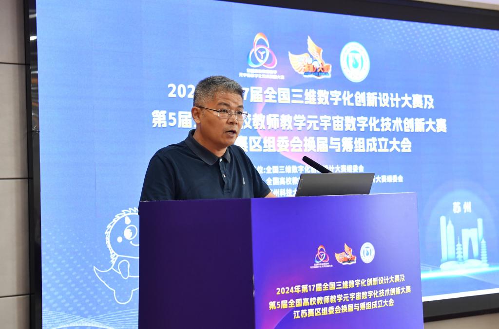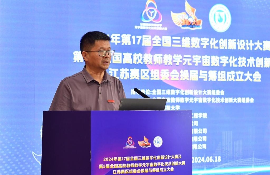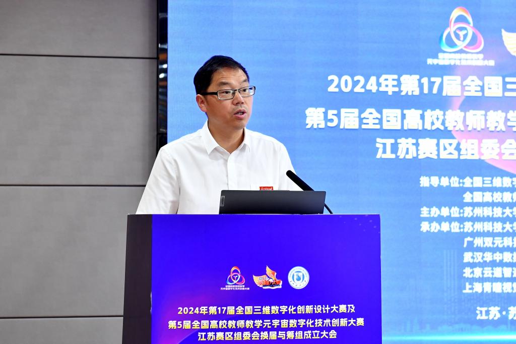 2024年6月18日,2024年第17届全国三维数字化创新设计大赛及第5届全国高校教师教学元宇宙数字化技术创新大赛江苏赛区组委会换届与筹组成立大会在我校石湖校区图书馆八楼会议室举行,我校副校长唐柏鉴出席会议,来自江苏省16所高校和科研院所的近40名专家学者参加会议,会议由朱其新主持。