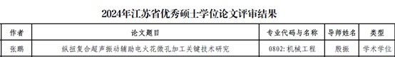 殷振副教授指导的2023届研究生张鹏的硕士学位论文《纵扭复合超声振动辅助电火花微孔加工关键技术研究》获评2024年江苏省优秀学术学位硕士学位论文。这是熊猫体育