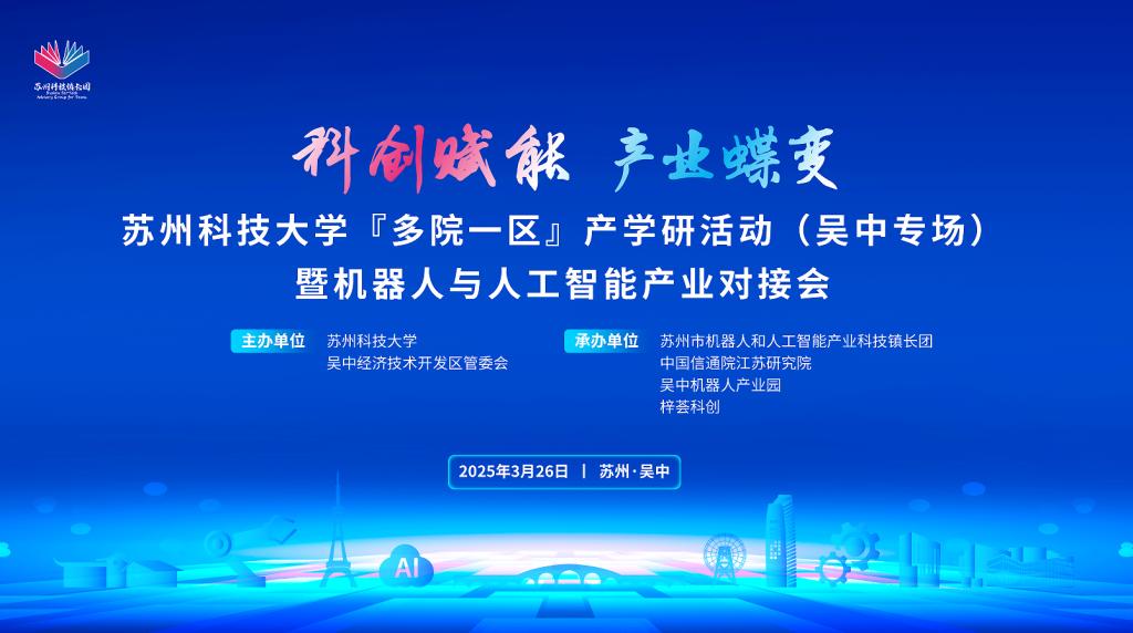 3月26日下午,苏州科技大学“多院一区”产学研活动吴中专场暨机器人与人工智能产业对接会在吴中机器人产业园成功举办。本次活动由苏州科技大学、吴中经济技术开发区管委会联合主办,苏州市机器人和人工智能产业科技镇长团、中国信通院江苏研究院等单位承办,旨在深化校企协同创新,加速科技创新与产业创新融合发展,助力吴中区打造“全国机器人产业集群第一区”。