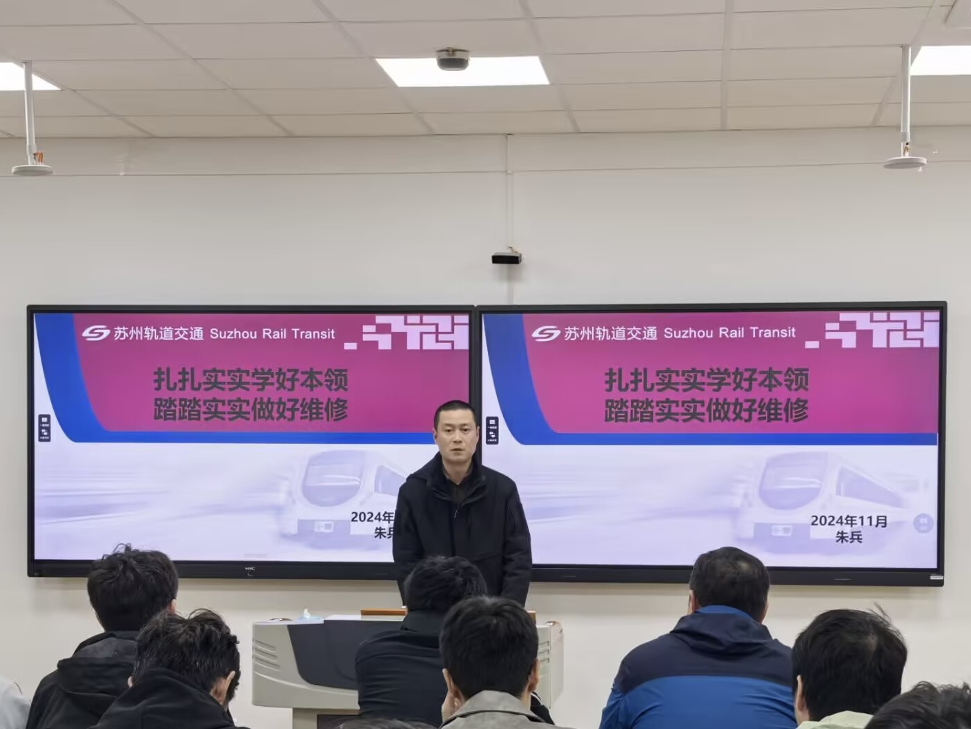 苏州轨道交通运营有限公司运营一分公司主管工程师、苏州市五一劳动奖章获得者朱兵以“聆听劳模故事,感悟工匠精神”为题讲述自己从事轨道交通行业的渊源、攻克技术难题的经历,他勉励与会党员在工作和学习中要爱岗敬业、刻苦钻研。