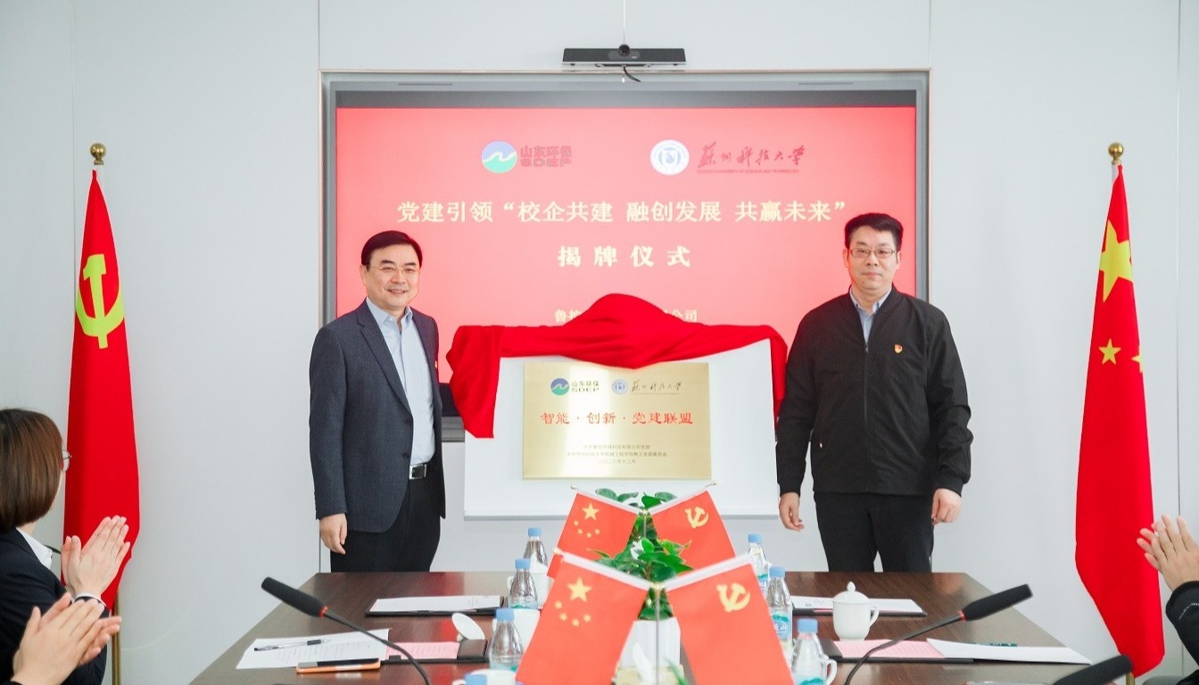 随后,苏科大与鲁控科技开展了党建共建签约和揭牌仪式、先进技术智能装备研究院揭牌仪式、首台智能设备揭牌揭幕仪式。