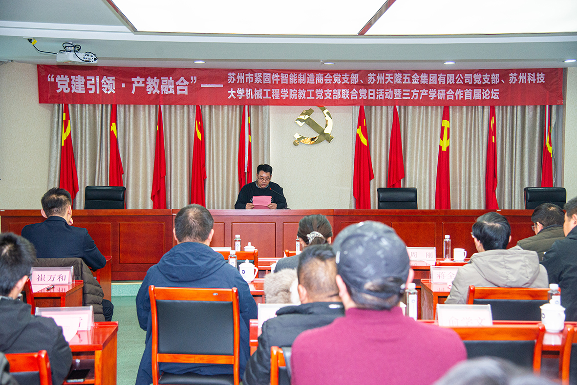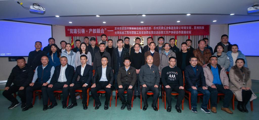 教工党支部、苏州市紧固件智能制造商会党支部、苏州天隆五金集团有限公司党支部联合党日活动暨“党建引领·产教融合”产学研合作首届论坛隆重召开。苏州市工商联党组成员、总商会党委书记周洲,苏州市工商联行业商会处处长尚东升,熊猫体育官网