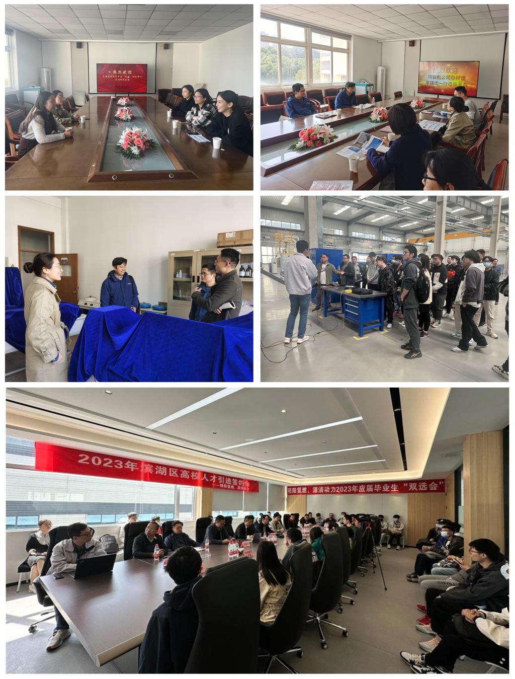 2023届毕业生前往无锡,参加2023年滨湖区高校人才引进签约会,实地走访明阳氢燃动力科技有限公司、江苏源清动力技术有限公司,师生一行参观走访了公司的机械智能制造车间,近距离感受企业发展情况。在签约会上伯洁与公司领导、无锡市滨湖区人力资源和社会保障局相关负责人进行了深入交流,当天有5名同学与企业达成初步意向,签订就业协议。