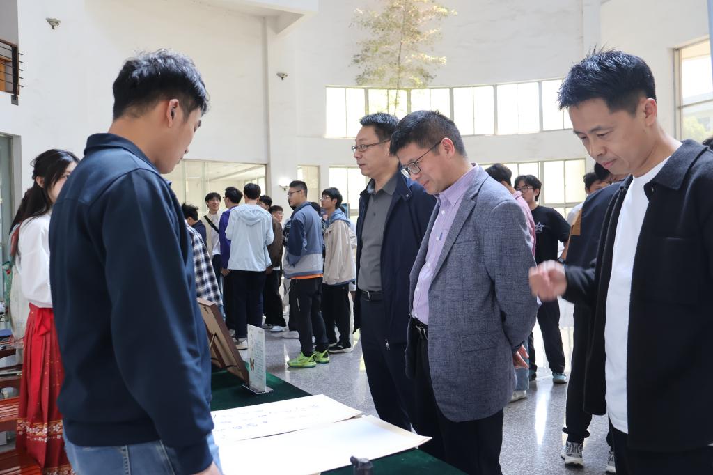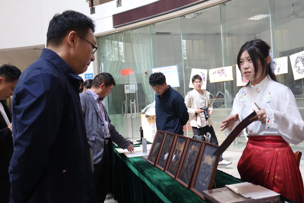 与会领导在“非遗集市”和“墨韵作品展”的现场,认真参观每一个展区,他们勉励大家要参与到传承与发展中国传统文化中去。周刚表示,当数控机床遇见缂丝木机,当机械制图对话水墨丹青,这正是我们探索的传统文化现代表达,此次活动为工科人才培养注入人文基因。